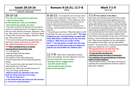 Appendix 2: Isaiah 29; Romans 9 & 11; Mark 7 parallel table